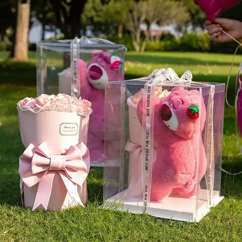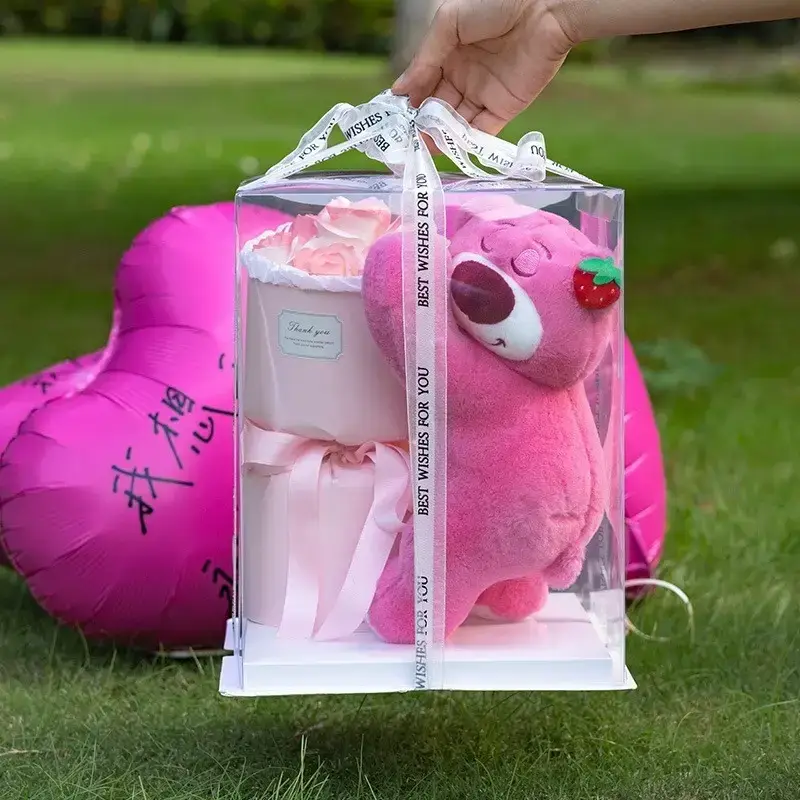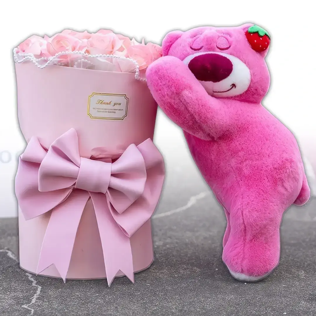 Ведмедик LED з букетом квітів з мила